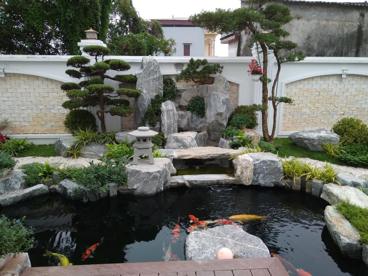 - Tượng đá: Có thể thêm các tượng thần tài, phật di lặc, hoặc linh vật hợp với mệnh của gia chủ để tăng cường phong thủy.