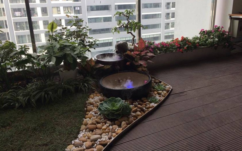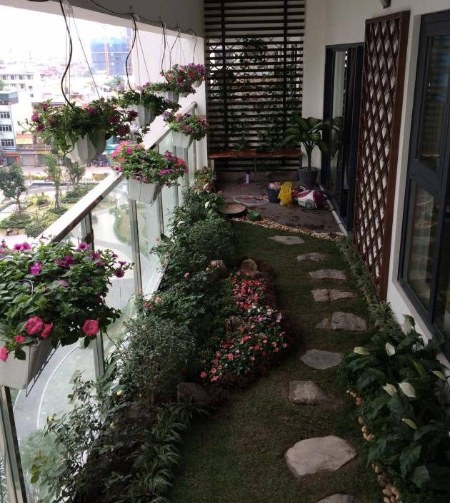 Thiết kế tiểu cảnh ban công chung cư nhà A Hoàng